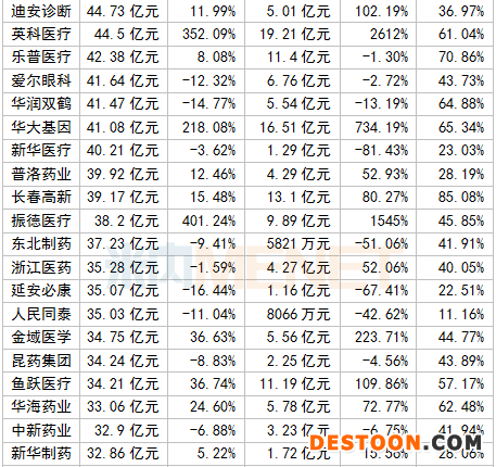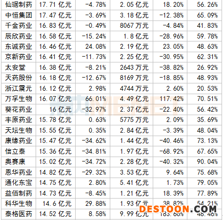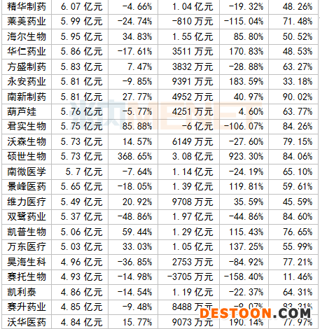 凈利潤(rùn)TOP10中,邁瑞醫(yī)療、恒瑞醫(yī)藥、云南白藥等5家超過(guò)20億元。其中,“醫(yī)械一哥”邁瑞醫(yī)療以34.54億元居首位,恒瑞醫(yī)藥則緊跟其后;維生素龍頭企業(yè)新和成凈利潤(rùn)增速最快,高達(dá)91.41%。