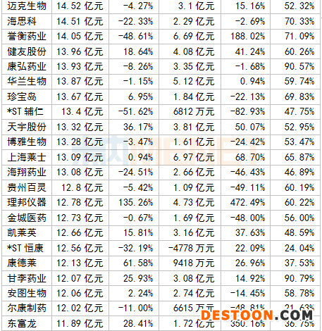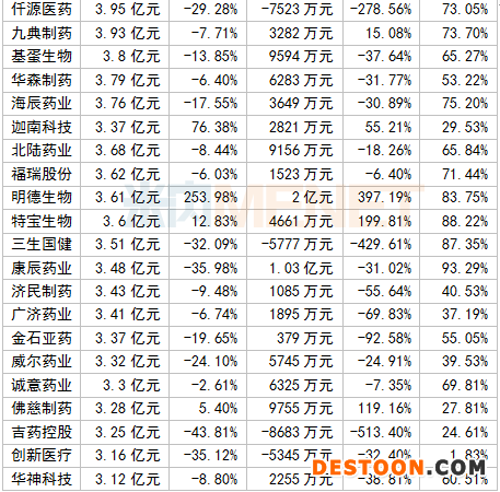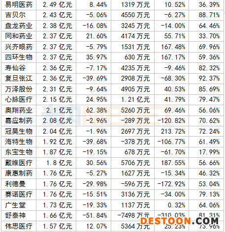 A股醫(yī)藥企業(yè)2020上半年毛利率TOP10