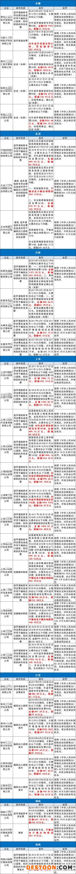 無(wú)獨(dú)有偶,除了上海市以外,國(guó)家稅務(wù)總局還公布了多個(gè)省份有關(guān)虛開(kāi)發(fā)票的違法信息,多家械企被查。