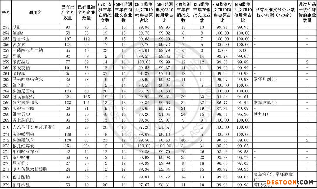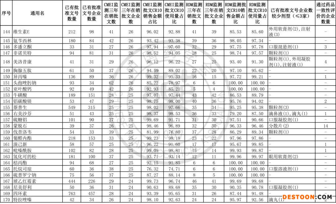 根據(jù)公告顯示, 該目錄是中國(guó)藥學(xué)會(huì)和國(guó)家藥品監(jiān)督管理局信息中心、南方醫(yī)藥經(jīng)濟(jì)研究所共同協(xié)作,對(duì)已獲批上市藥品在2017-2019年間的銷售情況進(jìn)行監(jiān)測(cè)分析,形成第六批過(guò)度重復(fù)藥品提示信息目錄,共302個(gè)過(guò)度重復(fù)品種,涉及臨床藥理學(xué)和治療學(xué)分類的14個(gè)大類、60個(gè)亞類,與《關(guān)于發(fā)布第五批過(guò)度重復(fù)藥品提示信息的公告》發(fā)布的過(guò)度重復(fù)品種目錄相比,調(diào)出1個(gè)品種;目錄提示信息新增兩項(xiàng)數(shù)據(jù)內(nèi)容,一是基于中國(guó)上市藥品目錄集對(duì)通過(guò)仿制藥質(zhì)量和療效一致性評(píng)價(jià)的企業(yè)數(shù)量進(jìn)行標(biāo)注;二是基于藥品已有批文數(shù)據(jù)庫(kù),對(duì)已有批文企業(yè)數(shù)≤3的劑型進(jìn)行標(biāo)注。
