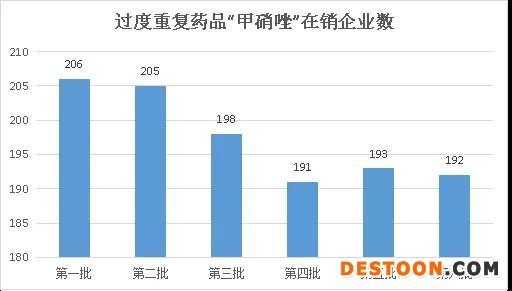 自2014年9月原國(guó)家食藥監(jiān)總局公布《第一批過(guò)度重復(fù)藥品品種目錄》,目前已是第六批。梳理公布的目錄發(fā)現(xiàn),過(guò)度重復(fù)藥品已經(jīng)有大量企業(yè)生產(chǎn)或正在申報(bào)投產(chǎn),市場(chǎng)需求已經(jīng)飽和或者接近飽和。