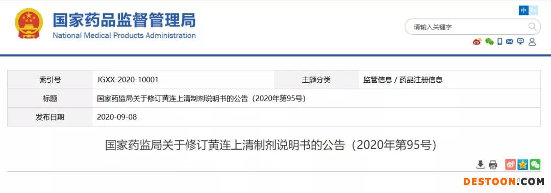 9月10日訊 9月8日,國家藥監(jiān)局發(fā)布了《關于修訂黃連上清制劑說明書的公告(2020年第95號)》(以下簡稱《公告》)。