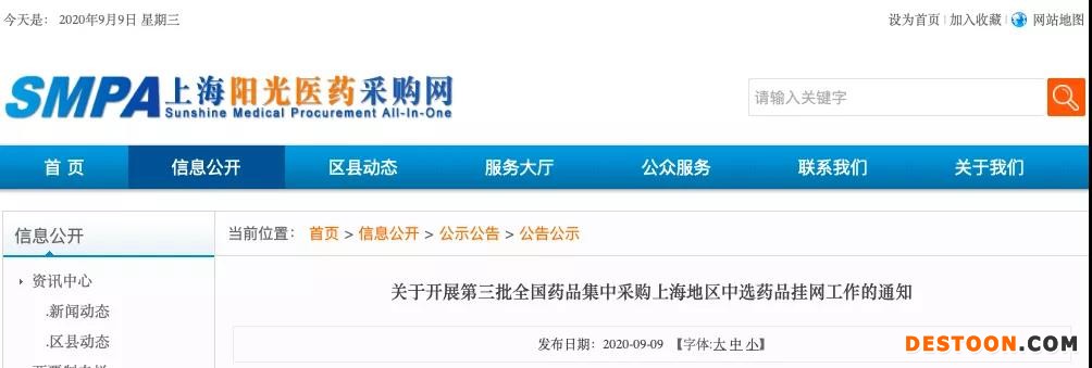 自9月10日,也就是明日起,上海地區(qū)第三批國(guó)采中選藥企可以登錄“上海市醫(yī)藥采購(gòu)服務(wù)與監(jiān)管信息系統(tǒng)”(網(wǎng)址:http://biz.smpaa.cn/ysxt/login.jsp)進(jìn)入“藥品申報(bào)”子欄目,在“全國(guó)藥品集中采購(gòu)中選品種”模塊上報(bào)上海地區(qū)中選藥品相關(guān)信息,申報(bào)截止時(shí)間為9月20日。