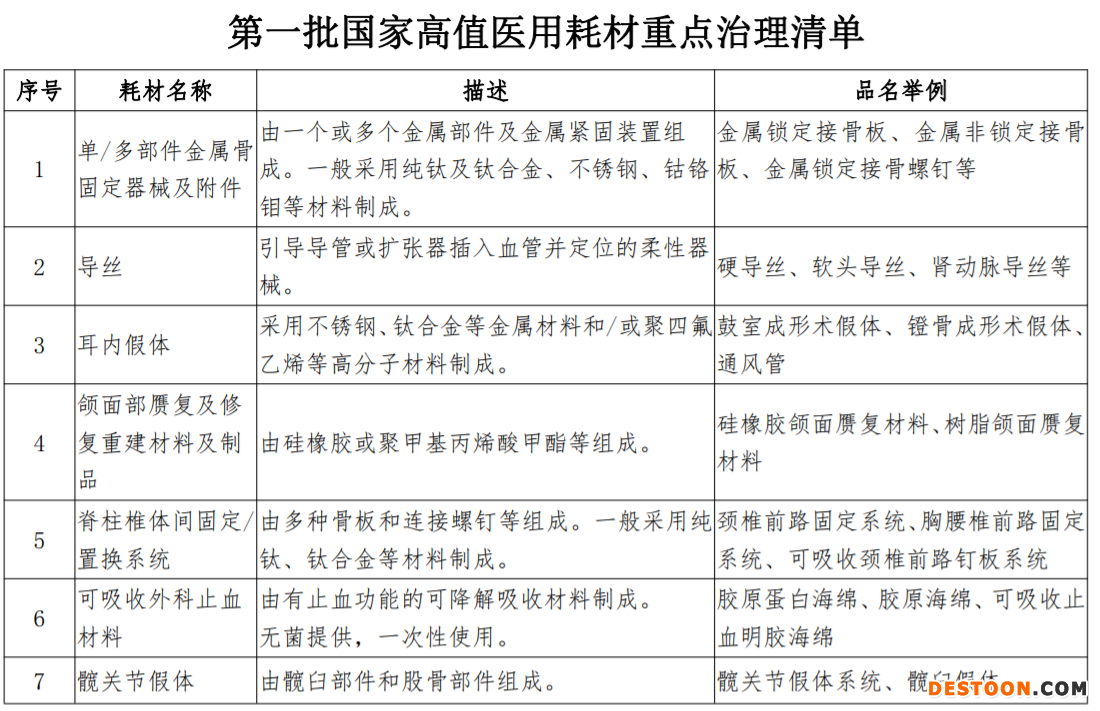 國家衛(wèi)健委在今年發(fā)布了《國家衛(wèi)生健康委辦公廳關(guān)于印發(fā)第一批國家高值醫(yī)用耗材重點治理清單的通知》,公布重點治理的18種高值耗材。