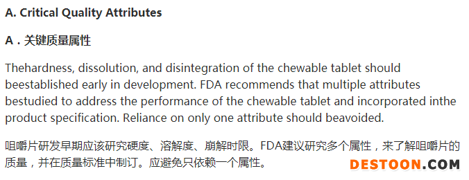 FDA發(fā)布的咀嚼片關(guān)鍵質(zhì)量屬性指導(dǎo)原則中提出: