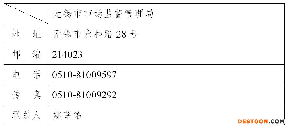 1.無錫市市場監(jiān)督管理局聯(lián)系方式