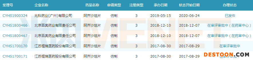 阿齊沙坦片上市申請(qǐng)企業(yè)情況