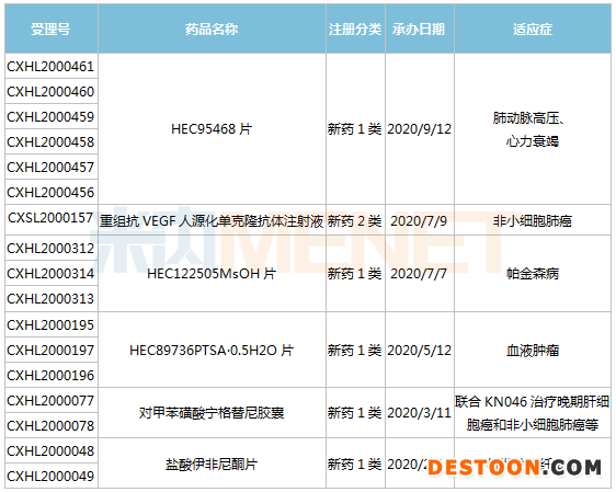 6款新藥中,伊非尼酮、寧格替尼非首次申報臨床,HEC89736PTSA·0.5H2O片已獲批臨床,將用于治療慢性淋巴細胞白血病、小淋巴細胞淋巴瘤、濾泡性淋巴瘤等血液腫瘤。據(jù)米內(nèi)網(wǎng)了解,HEC95468片擬開展適應(yīng)癥為肺動脈高壓和心衰,HEC122505MsOH片擬用于治療帕金森病。