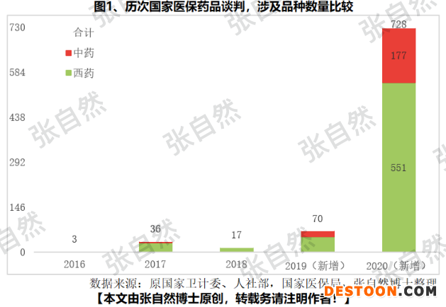 本次共有751個品種通過了形式審查,除23個需要調(diào)整支付價和適應(yīng)癥、功能主治等發(fā)生了變化的原先談判品種外,本次新增728個,其中,西藥551個,中藥177個,是歷次最多的,2019年國談,共有70個新增品種談判成功,其中西藥52個、中藥18個。
