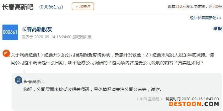 目前,對(duì)于長(zhǎng)春高新股價(jià)較大波動(dòng)主要有兩種觀點(diǎn)。一是,媒體報(bào)道中調(diào)研事件公司高管給出的業(yè)績(jī)指引不及預(yù)期,以及未來存在高管減持的安排,引發(fā)了投資者的擔(dān)憂情緒;二是,長(zhǎng)春高新此前漲幅過高,資金抱團(tuán)意愿松散。9月16日,長(zhǎng)春高新在互動(dòng)平臺(tái)表示,公司層面未接受過相關(guān)調(diào)研,具體情況請(qǐng)關(guān)注公司公告等。據(jù)統(tǒng)計(jì),14-16日,在互動(dòng)平臺(tái)與此次調(diào)研事件相關(guān)的提問就有多達(dá)近30條。