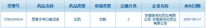 目前,恩替卡韋口服溶液并沒有企業(yè)獲批。日前安徽新世紀藥業(yè)以仿制3類申報上市獲受理,一旦獲批將視同通過一致性評價。在此之前,史達德藥業(yè)|北京紐拜歐醫(yī)藥、揚子江藥業(yè)集團江蘇制藥以仿制3類申報上市在審評審批中(在藥審中心)。從承辦日期來看,揚子江藥業(yè)集團江蘇制藥時間最早。