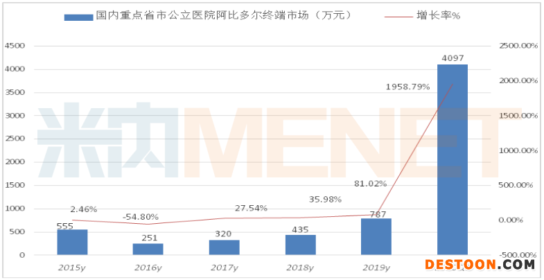 米內(nèi)網(wǎng)數(shù)據(jù)顯示,2020年一季度國內(nèi)重點(diǎn)省市公立醫(yī)院終端阿比多爾市場為4097萬元,較上一年同期增長1958.79%。