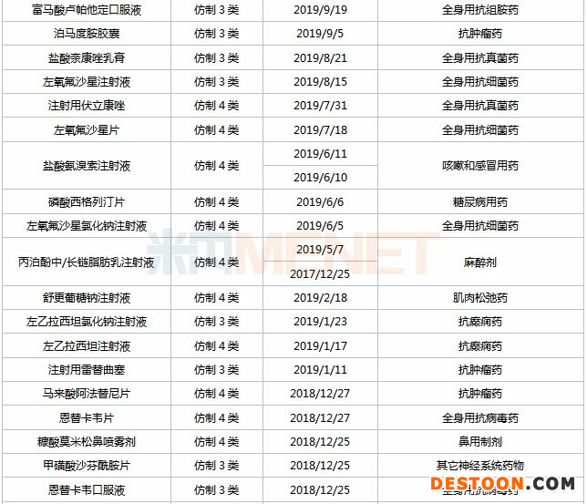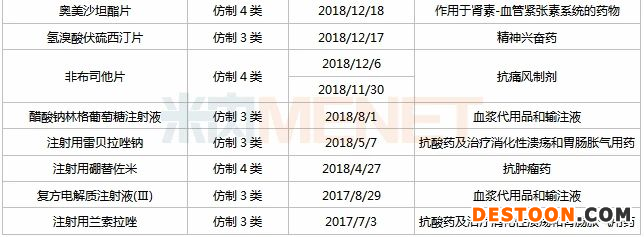 表3:未有仿制藥獲批上市的品種