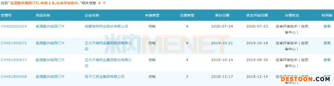 在此之前,該產(chǎn)品揚(yáng)子江以仿制3類、正大天晴藥業(yè)集團(tuán)和成都倍特藥業(yè)以仿制4類提交上市申請在審評審批中(在藥審中心)。從承辦日期來看,揚(yáng)子江的時間最早。