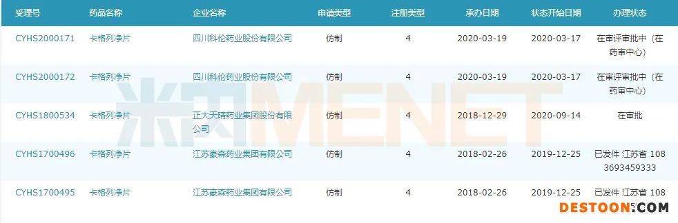 圖2:卡格列凈仿制上市申請情況