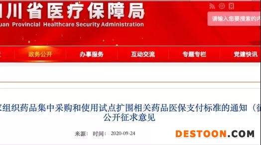 9月28日訊 9月24日,四川醫(yī)保局發(fā)布《關(guān)于印發(fā)國家組織藥品集中采購和使用試點(diǎn)擴(kuò)圍相關(guān)藥品醫(yī)保支付標(biāo)準(zhǔn)的通知(征求意見稿)》公開征求意見。