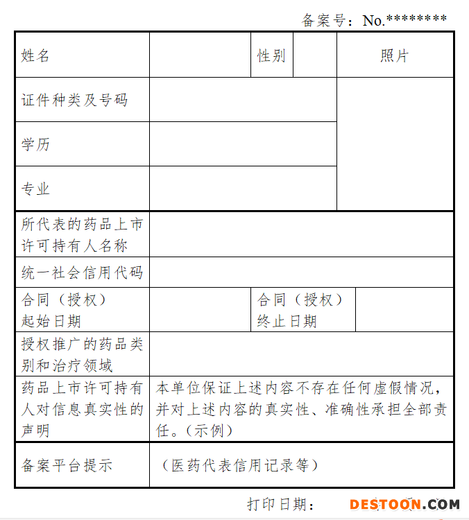附:醫(yī)藥代表備案信息表(樣式)
