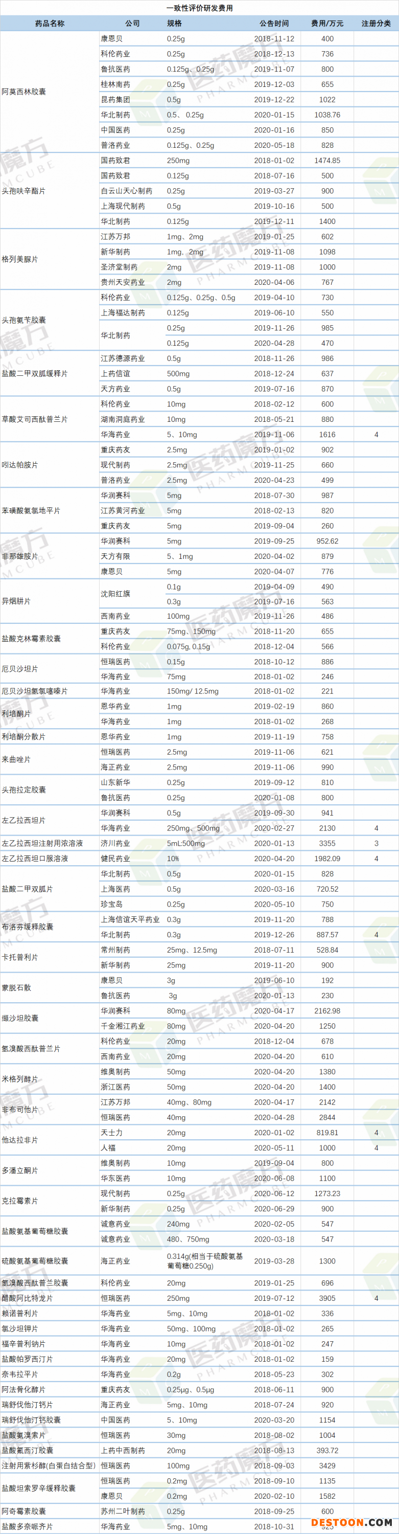 183個(gè)藥品一致性評(píng)價(jià)研發(fā)費(fèi)用匯總:67個(gè)高于1000萬
