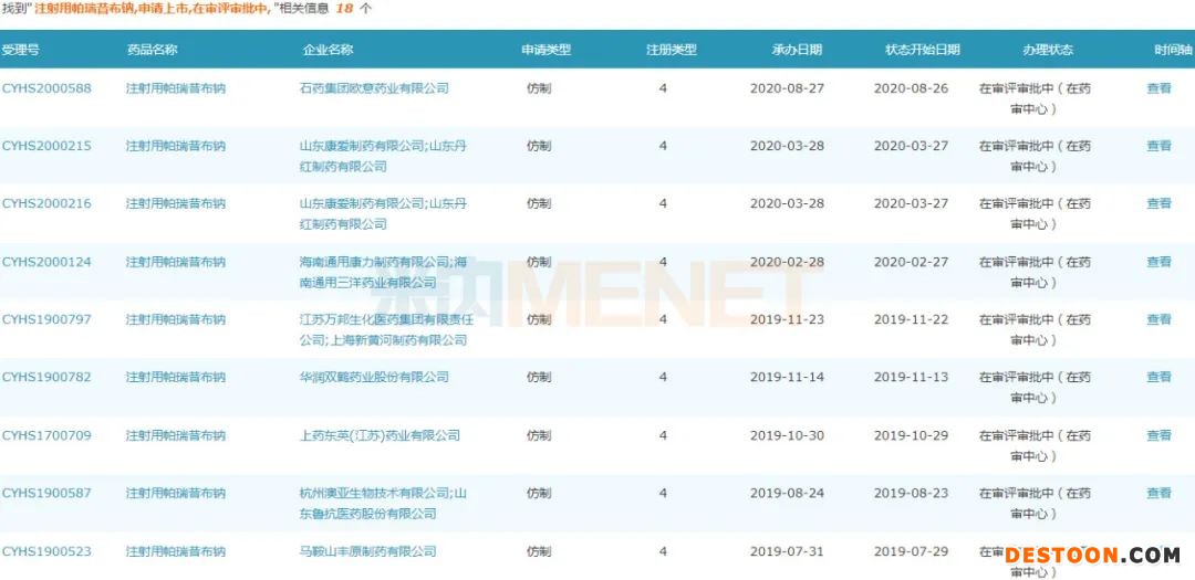10月10日訊 近日,CDE官網(wǎng)顯示,海南皇隆制藥的注射用帕瑞昔布鈉仿制4類(lèi)上市申請(qǐng)獲得受理。米內(nèi)網(wǎng)數(shù)據(jù)顯示,2019年中國(guó)公立醫(yī)療機(jī)構(gòu)終端帕瑞昔布注射劑銷(xiāo)售額超過(guò)15億元,其中,輝瑞市場(chǎng)份額占比最大,達(dá)60.59%。截至目前,該產(chǎn)品國(guó)內(nèi)生產(chǎn)企業(yè)超過(guò)20家,包括科倫藥業(yè)、齊魯制藥、南京正大天晴制藥等。