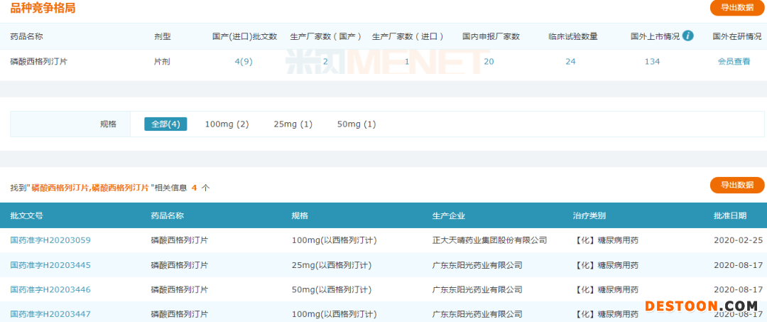 今年2月,磷酸西格列汀片正大天晴藥業(yè)以首仿獲批;8月,廣東東陽(yáng)光藥業(yè)成為第二家獲批的仿制藥企業(yè)。而兩家企業(yè)均以仿制4類獲批,視同通過(guò)一致性評(píng)價(jià)。