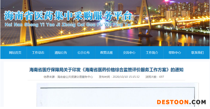 10月12日訊 10月10日,海南省醫(yī)療保障局印發(fā)《海南省醫(yī)藥價(jià)格綜合監(jiān)管評(píng)價(jià)服務(wù)工作方案》(以下稱《工作方案》),指出將通過引入第三方服務(wù),完善醫(yī)藥價(jià)格監(jiān)測(cè)系統(tǒng),實(shí)現(xiàn)與醫(yī)藥集中采購(gòu)服務(wù)平臺(tái)互聯(lián)互通。