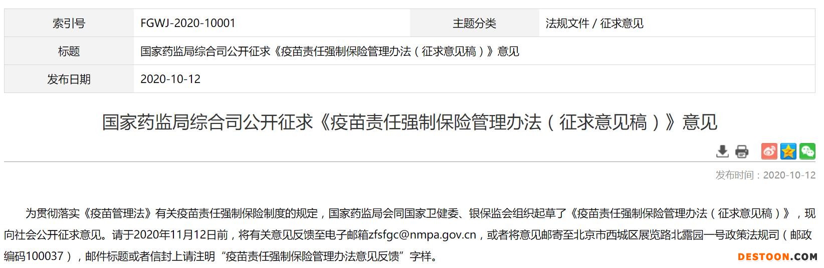附疫苗責任強制保險管理辦法(征求意見稿)