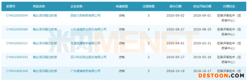 圖2:目前在審的氟比洛芬酯注射液仿制上市申請