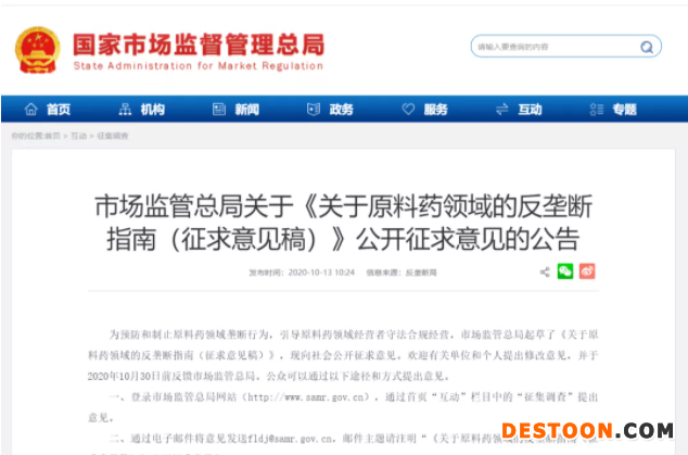 10月16日訊 10月13日,國家市場監(jiān)管總局發(fā)布《關(guān)于原料藥領(lǐng)域的反壟斷指南(征求意見稿)》(下稱《指南》),向社會公開征求意見。希望借此預(yù)防和制止原料藥領(lǐng)域壟斷行為,引導(dǎo)原料藥領(lǐng)域經(jīng)營者守法合規(guī)經(jīng)營。但對于這份指導(dǎo)意見的價(jià)值有多大,業(yè)內(nèi)有不同的聲音。