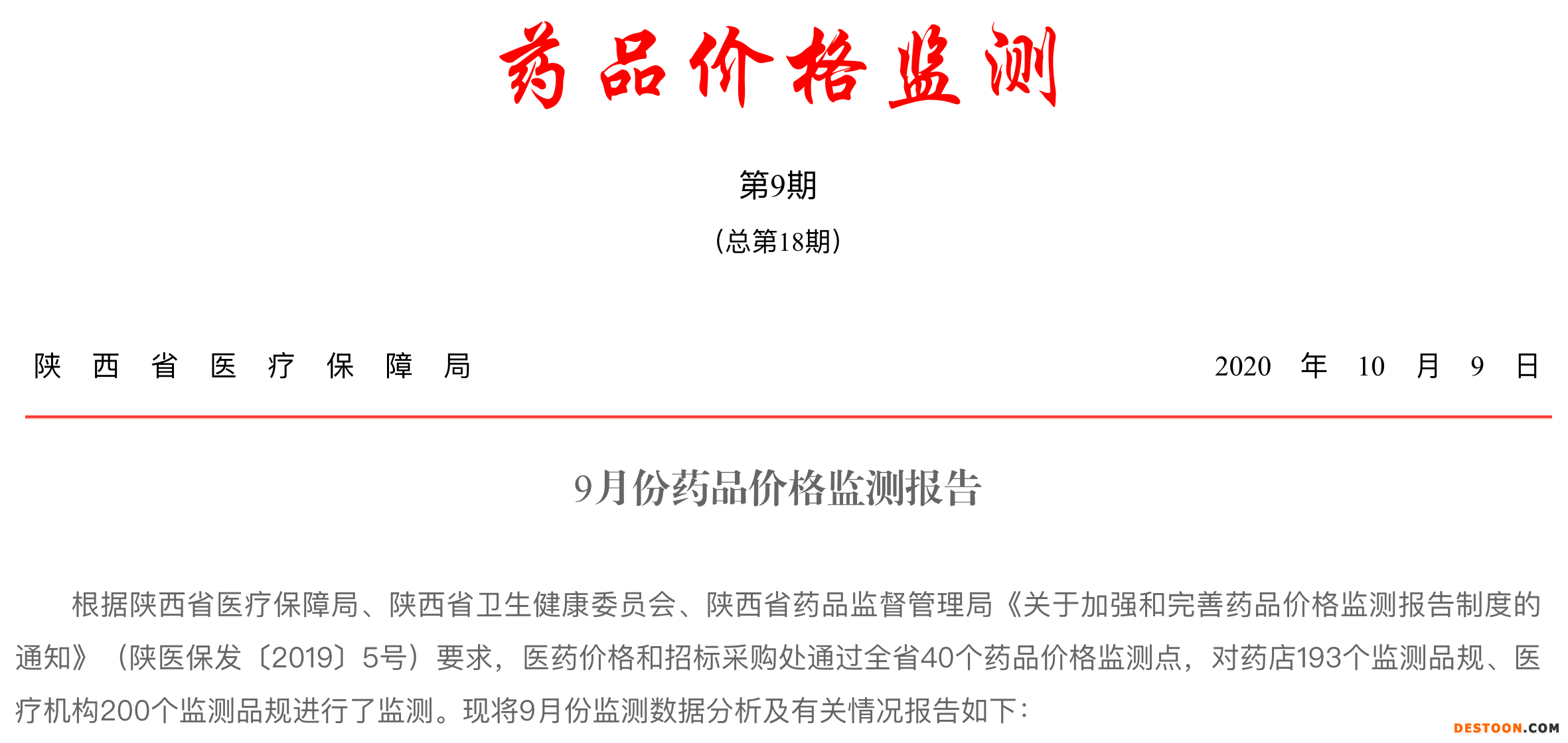 為進一步做好藥品價格監(jiān)測工作,陜西省醫(yī)保局、陜西省衛(wèi)健委、陜西省藥監(jiān)局三部委在2019年4月發(fā)布《關于加強和完善藥品價格監(jiān)測報告制度的通知》,旨在通過建立健全藥品價格監(jiān)測體系和加強藥品價格監(jiān)測數(shù)據(jù)分析,來引導市場價格合理形成,維護市場價格秩序。