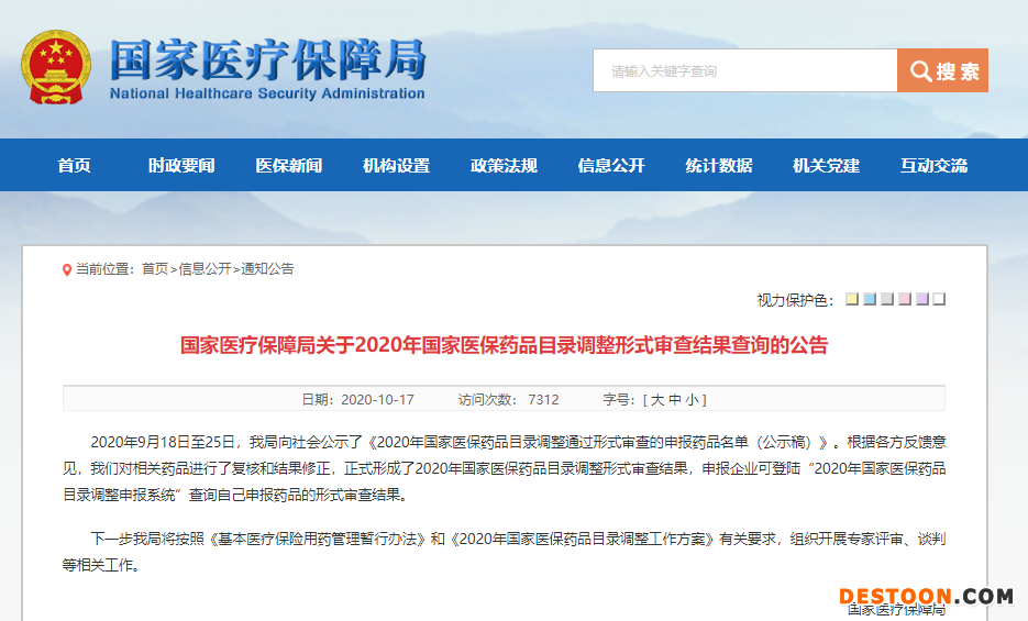 10月19日訊 10月17日,周六,醫(yī)保局沒有休息。醫(yī)保局官網(wǎng)發(fā)布《關(guān)于2020年國家醫(yī)保藥品目錄調(diào)整形式審查結(jié)果查詢的公告》。