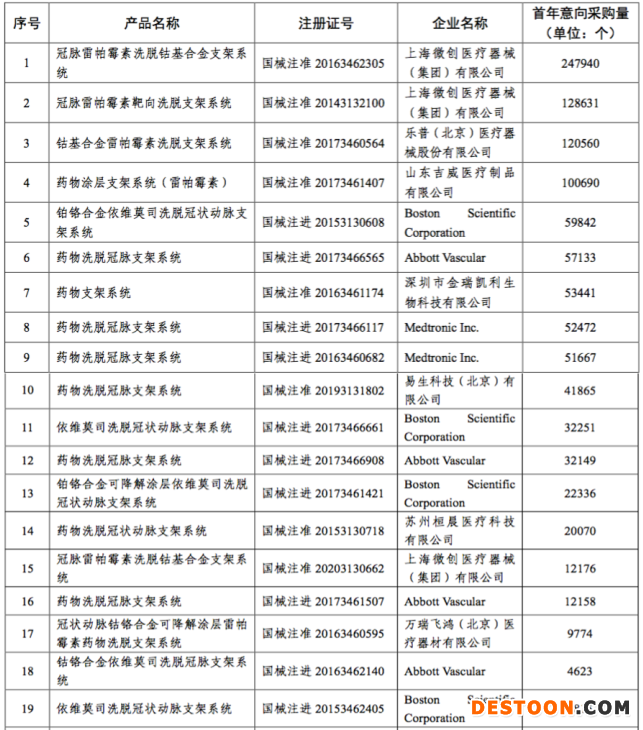 首年意向采購總量為1074722個,由聯(lián)盟地區(qū)各醫(yī)療機構(gòu)報送采購總需求的80%累加得出。上海微創(chuàng)、樂普、波士頓科學、雅培、美敦力等12家企業(yè)赫然在列。