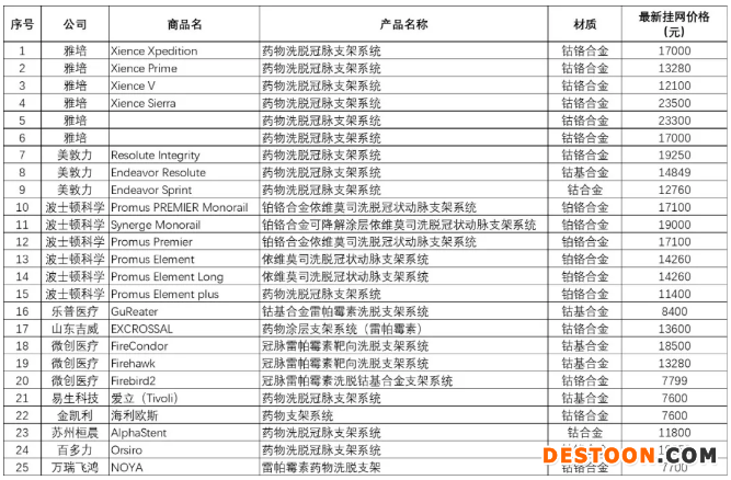 從文件中,我們可以了解此次國采冠脈支架涉及的材質(zhì)為鈷鉻合金和鉑鉻合金,此前合金類冠脈支架產(chǎn)品最新掛網(wǎng)價格大致如下: