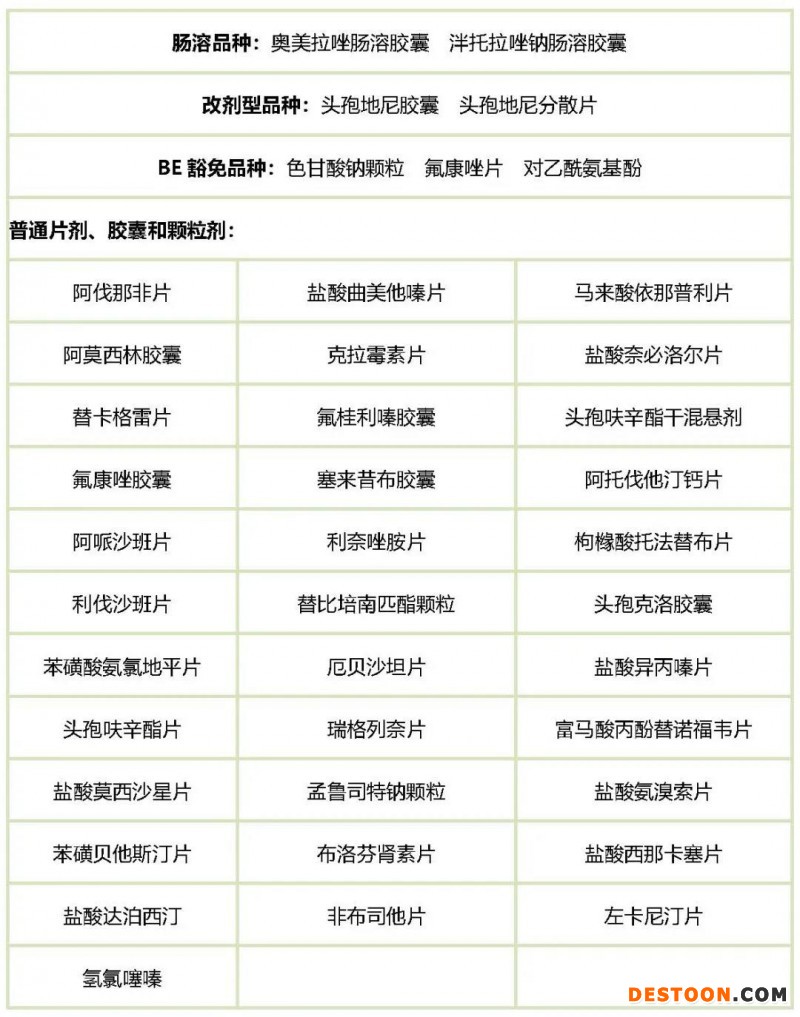 備注:A類項(xiàng)目:普通片劑、膠囊劑