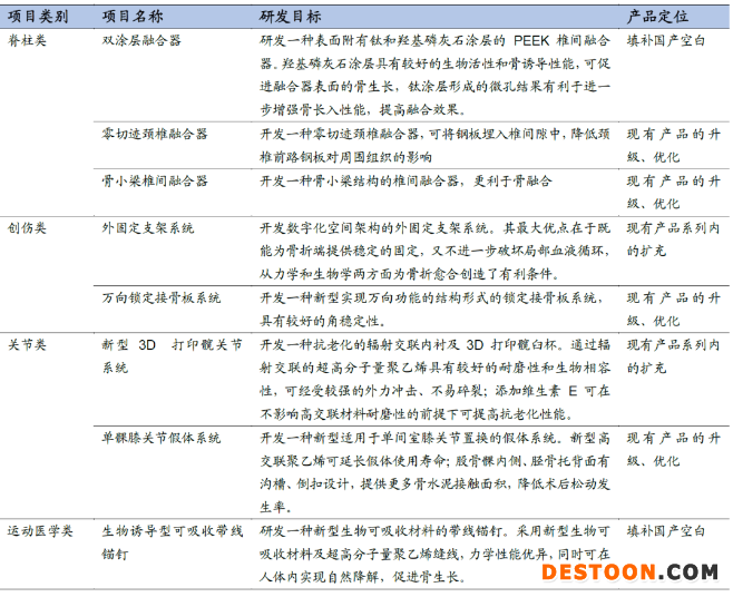 公司目前在研骨科項(xiàng)目