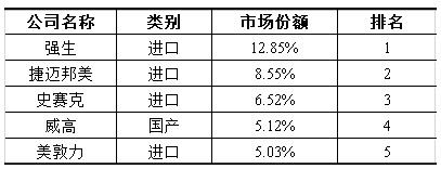 2019年中國(guó)骨科植入市場(chǎng)生產(chǎn)企業(yè)市場(chǎng)份額排名