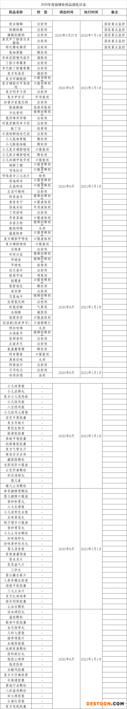 除此外,2020年,青海省將調(diào)出國家重點(diǎn)監(jiān)控藥品和上年度青海省省藥品采購平臺未招采使用的藥品,共129個品種,從2021年1月1日起停止醫(yī)保、工傷保險報付。