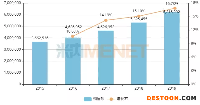 作為一項新納入的考核標準,抗腫瘤藥物備受重視其實并不只是政策因素影響,市場情況也顯示近年國內抗腫瘤藥市場保持頗高的增速。米內網(wǎng)數(shù)據(jù)顯示,最近幾年在中國城市公立醫(yī)院、縣級公立醫(yī)院、城市社區(qū)中心及鄉(xiāng)鎮(zhèn)衛(wèi)生院(簡稱中國公立醫(yī)療機構)終端抗腫瘤藥的銷售規(guī)??焖偕蠞q,2016-2019年增速分別為12.44%、16.36%、19.10%、21.30%,2019年漲至961億元。盡管受到臨床用藥推薦“能口服不注射”原則影響,抗腫瘤用藥領域仍然是注射劑市場占較大(市場占比達64.74%),但增速稍稍低于水平線,2016-2019年的增速均保持在10%以上,市場潛力依然可觀。