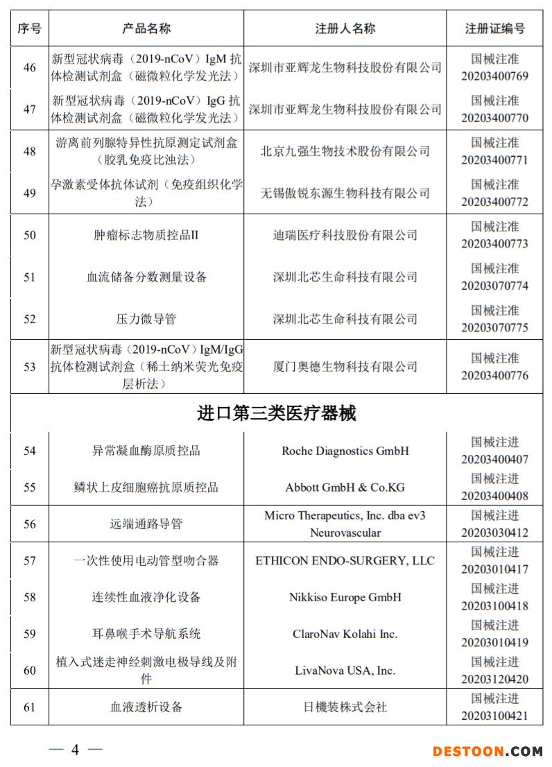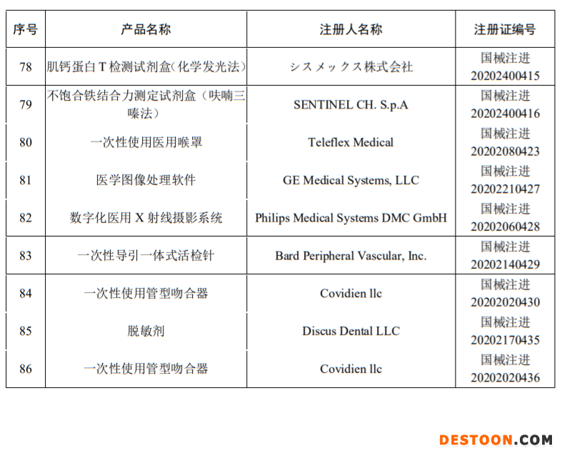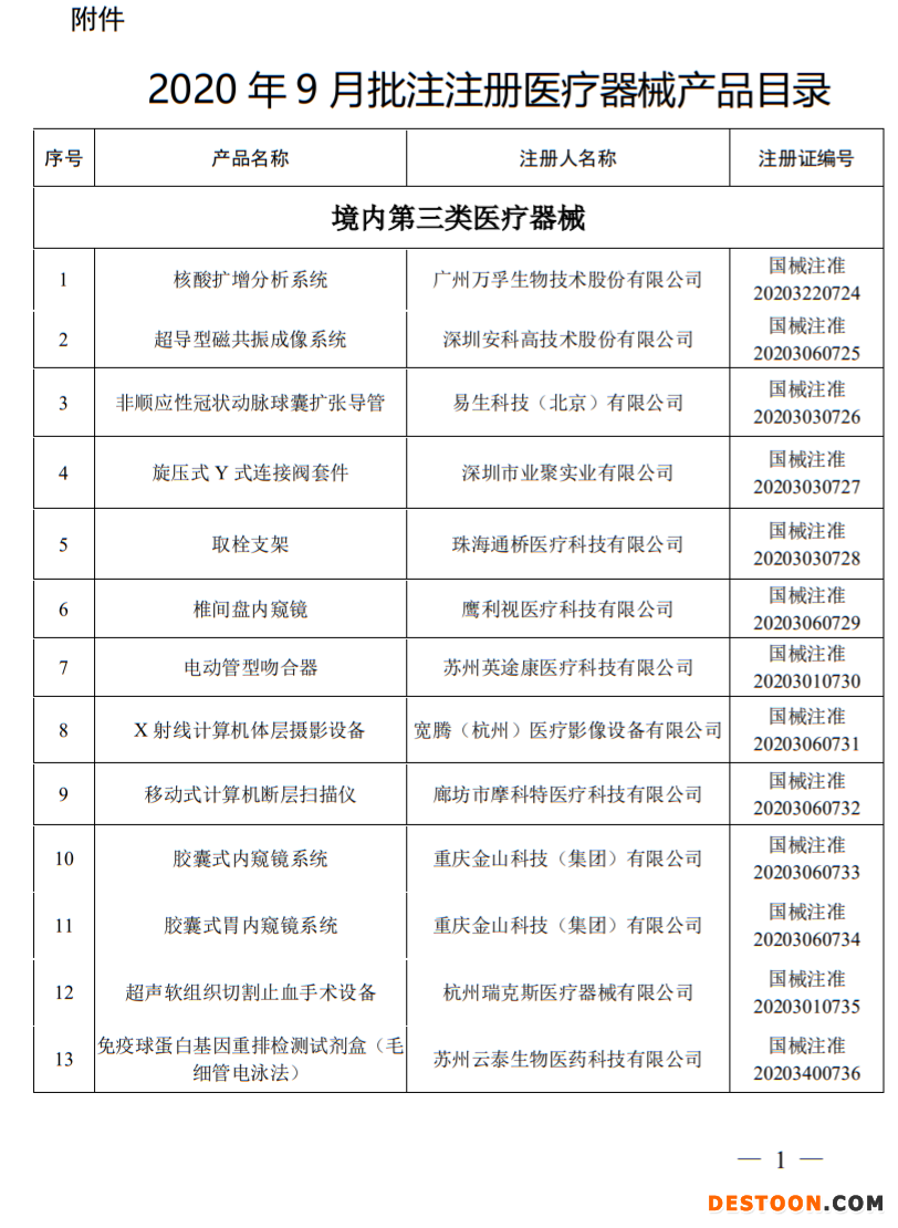 上述公告顯示,2020年9月,國家藥品監(jiān)督管理局共批準(zhǔn)注冊醫(yī)療器械產(chǎn)品86個。其中,境內(nèi)第三類醫(yī)療器械產(chǎn)品53個,進(jìn)口第三類醫(yī)療器械產(chǎn)品16個,進(jìn)口第二類醫(yī)療器械產(chǎn)品17個。