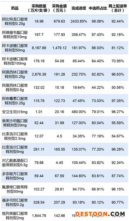 10月28日訊 10月27日,江西省發(fā)布落實(shí)國(guó)家組織藥品集中采購(gòu)和使用工作情況通報(bào)(2020年第7期)(下稱《通報(bào)》)。自今年4月11日起第二批國(guó)家組織藥品集中采購(gòu)和使用江西中選結(jié)果執(zhí)行以來(lái),截至9月30日,32個(gè)中選藥品的36個(gè)品規(guī)中已有26個(gè)品規(guī)完成全省約定采購(gòu)數(shù)量。其中,阿比特龍完成進(jìn)度最高,達(dá)2433.85%。阿德福韋酯、安立生坦、他達(dá)拉非、紫杉醇(白蛋白結(jié)合型)完成進(jìn)度均超過(guò)300%。