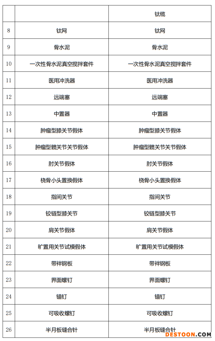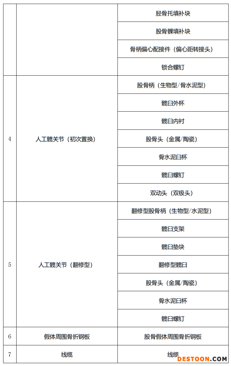 具體涉及人工膝關(guān)節(jié)、單髁膝關(guān)節(jié)系統(tǒng)、人工髖關(guān)節(jié)、假體周圍骨折鋼板、一次性骨水泥真空攪拌套件等29大類54個(gè)品種的骨科耗材。