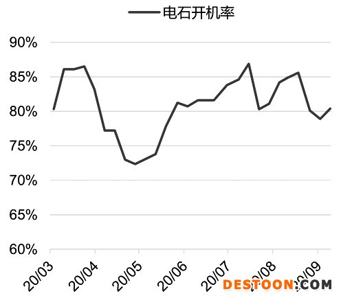 4月底以來,各地電石到貨價格一路拉漲,陜西北元到貨價從2330—2360元/噸漲至2820—2840元/噸,整體上漲幅度在500元/噸左右。究其原因在于前期4—5月電石因低利潤降負減產(chǎn),之后PVC需求快速恢復造成電石出現(xiàn)階段性供不應(yīng)求,進入夏季后,高溫和雨季使得電石裝置不穩(wěn)定,同時寧夏和內(nèi)蒙古等地的運輸監(jiān)管政策使得運費上漲。入秋后電石開工穩(wěn)定性提升,運輸受限問題也得到緩解,預計未來電石到貨價格重心略有下移。