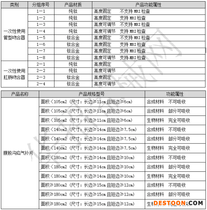吻合器和補片類中選規(guī)則相同: