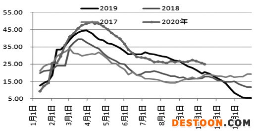 圖為華東和華南社會庫存走勢