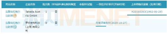 圖1:羅欣藥業(yè)提的鹽酸烏拉地爾注射液注冊情況