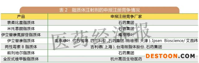 2、脂質(zhì)體注射劑 前排企業(yè):石藥集團、南京綠葉