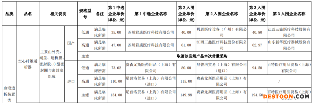 對于本次帶量采購的血液透析類產(chǎn)品,已有地區(qū)完成帶量采購并公布價格。