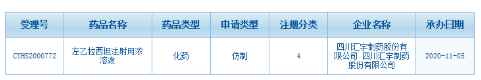 11月6日訊 11月5日,CDE官網(wǎng)顯示,四川匯宇制藥以仿制4類提交的左乙拉西坦注射用濃溶液上市申請獲得CDE承辦受理。2020年至今,四川匯宇制藥已有5個品種(均為注射劑)以新分類報產(chǎn),其中普樂沙福注射液暫無首仿,四川匯宇制藥獨(dú)家以新分類報產(chǎn)。