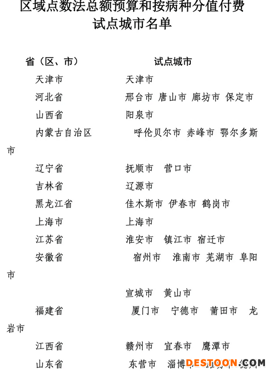 按病種分值付費(fèi)試點(diǎn)城市出爐