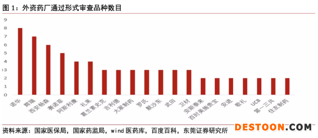 據(jù)東莞證券統(tǒng)計(jì),外資藥企中,規(guī)定期間內(nèi)獲批上市的新藥中,通過審查數(shù)量居前的是諾華、輝瑞、西安楊森和賽諾菲。其中諾華有8個(gè)新藥通過形式審查,分別包括黑色素瘤、銀屑病、多發(fā)性硬化癥等治療領(lǐng)域;輝瑞有7個(gè)新藥通過形式審查,西安楊森則有6個(gè)新藥通過形式審查。