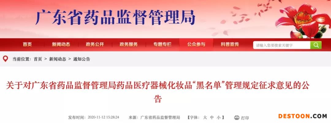 11月12日,廣東省藥監(jiān)局發(fā)布《關(guān)于對廣東省藥品監(jiān)督管理局藥品醫(yī)療器械化妝品“黑名單”管理規(guī)定征求意見的公告》,將加強(qiáng)藥品、醫(yī)療器械和化妝品安全監(jiān)管,加大對違法違規(guī)行為的懲戒力度。